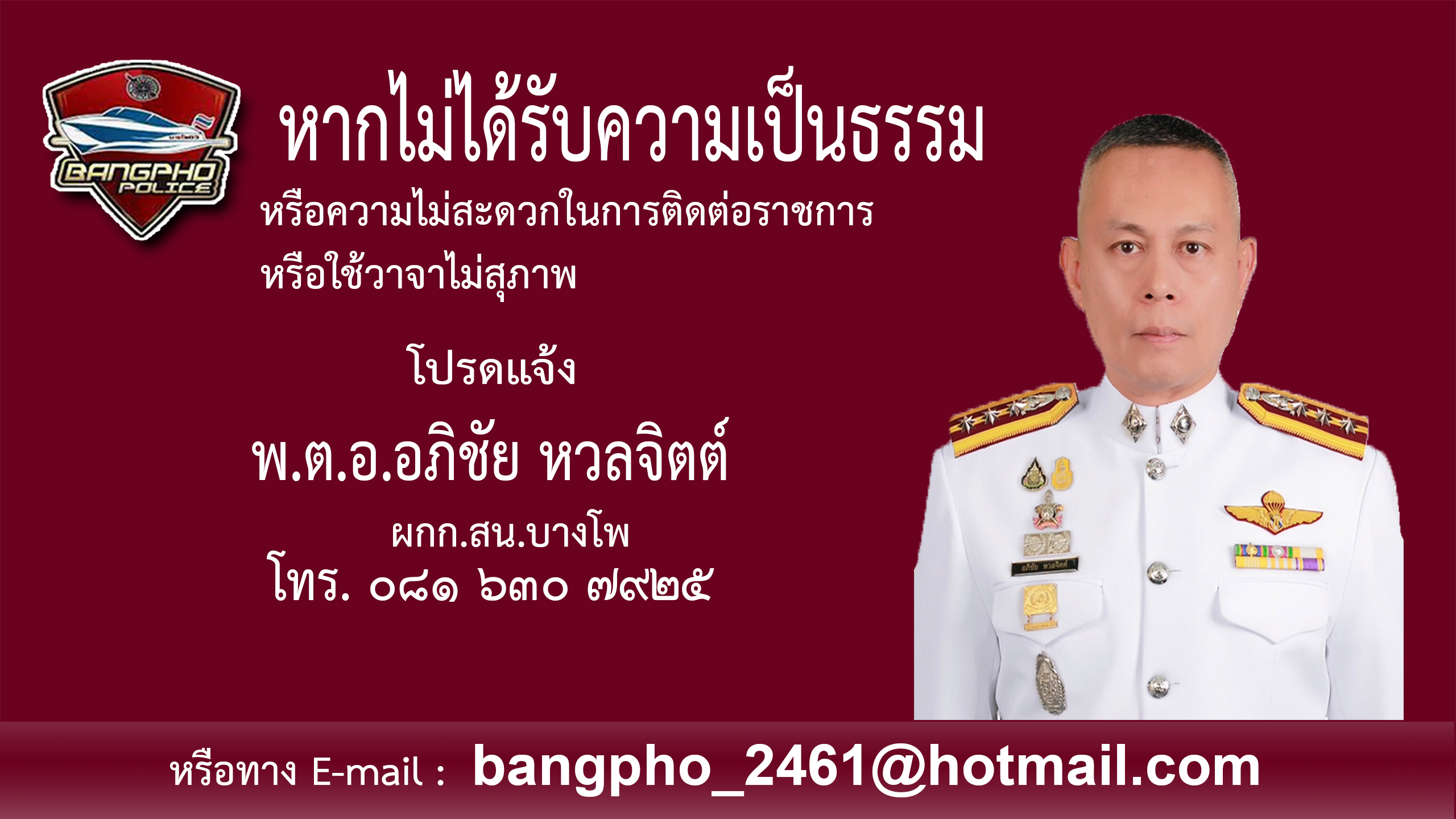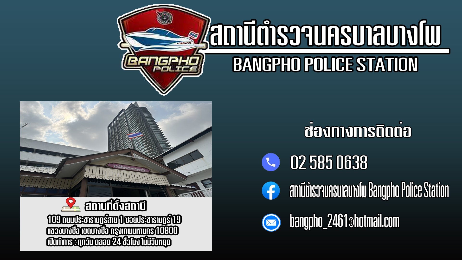 ติดต่อ 02 585 0638 โทรสาร 02 586 0099 I bangpho.metro.police.go.th